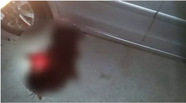 记者在事发现场看到,女孩儿坠落的地方停着一辆小汽车,车顶留有女孩儿的手印,地上的血迹已经被冲洗干净。