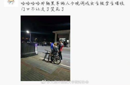 据了解,大外女生在校内屡次遭社会车辆骚扰,此前学校男生就自愿组织了骑车队巡逻。