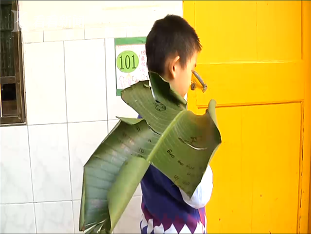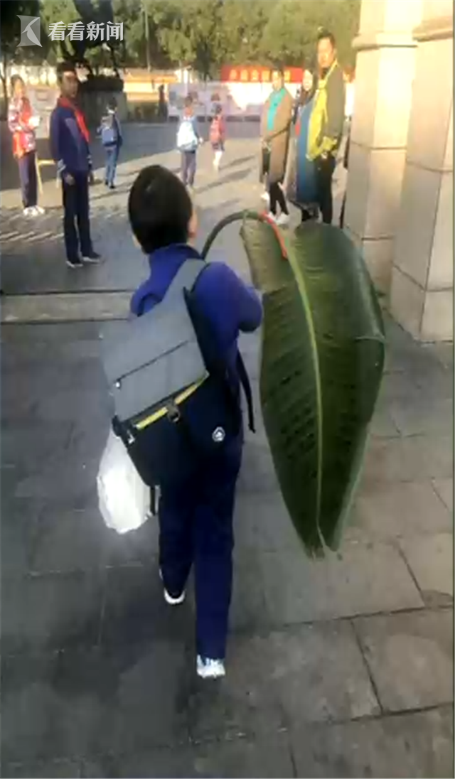 老师要求树叶上写拼音 小学生扛芭蕉叶交作业
