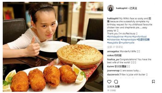 3月17日,胡杏儿[微博]老公李乘德在其个人社交平台晒出一张妻子胡杏儿的素颜照,并配文秀恩爱:“我妻子满脸骄傲,因为她圆满完成了我的生日愿望——帮我做我小时候最爱吃的基辅鸡和牧羊人派”。然而不少网友却发现,产后的胡杏儿相较于以前发际线似乎后移严重,疑似脱发。