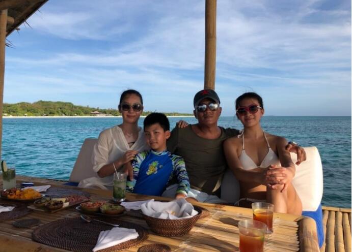 照片中一家四口在湖边的草地上共享烛光晚餐,有着“高冷总裁”之称的康康已经是个帅气少年了。16岁的九儿是个元气少女,笑容甜美,一家人其乐融融温馨幸福。