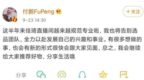 9月23日讯,喜欢看李佳琦直播的都知道,他身边有一个小助理经常出境,但是就在今天的小助理付鹏发文宣布未来将彻底退出李佳琦团队。不少网友表示有点蒙,这是怎么回事?
