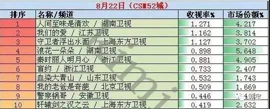 所以电视剧从开播第一天的收视率0.984,排名第二;第二天就跌到了0.696,从第二滑到了第八的位置。甚至排在没多少当红明星加持的《浪花一朵朵》之下。