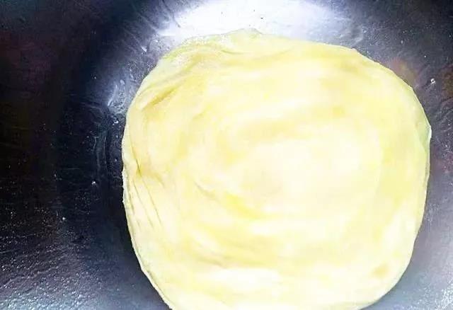 步骤12、这样就做成了手抓饼,内里的饼多层还有韧劲,趁着热乎的时候吃真是香喷喷的。