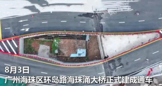 8月3日,广州海珠区环岛路海珠涌大桥正式建成通车,大桥上一处“钉子户”引得路人拍照围观。这户房屋属于革新路海傍外街16号部分没拆掉的旧房子。记者走访桥下民房,户内老中少三代仍在居住,对于市民前来“参观”表示无奈。网友评论称此处为“海珠之眼”。