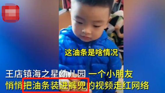 10月22日,据悉近日在河南驻马店,某幼儿园一小朋友悄悄把油条装进裤兜的视频,引起了不少问网友的关注,据该幼儿园老师称,吃完早餐后,发现一个小朋友裤兜里装着油条,说带回去给爷爷吃,小朋友今年3岁,在上小班。不少网友表示:真的太有孝心了!