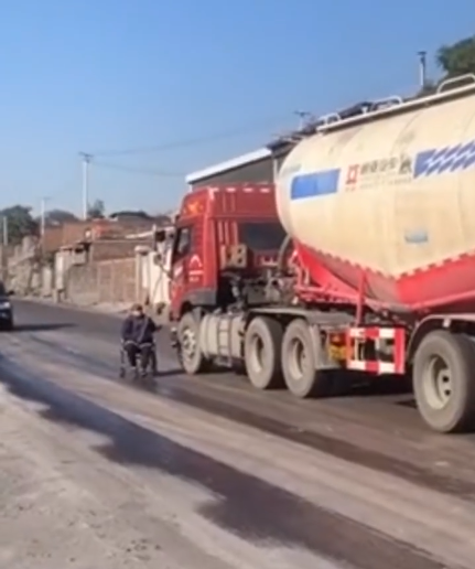 七旬老人坐轮椅,马路中间拦货车要钱,当地工作人员:没法处理