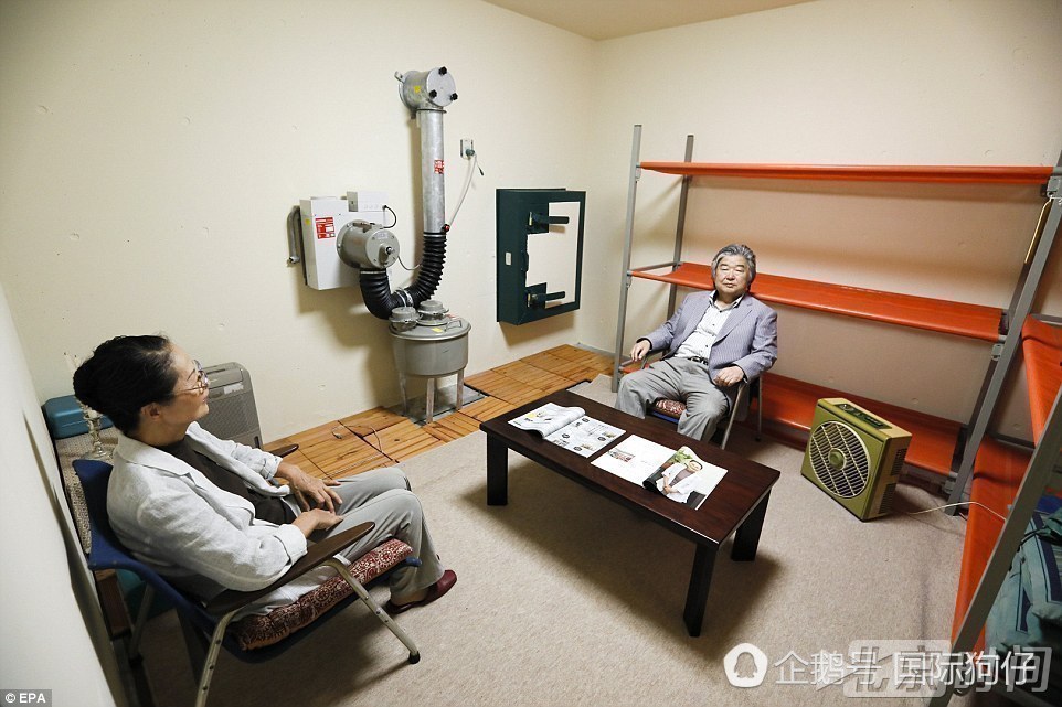 图为织部健次(右)和他的公司经理织部信子(左)坐在自家的核掩体内。