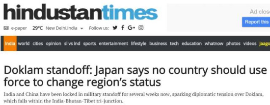据《印度快报》等多家印度媒体18日报道,洞朗对峙两月后,印度终于获得一个大国支持:日本。