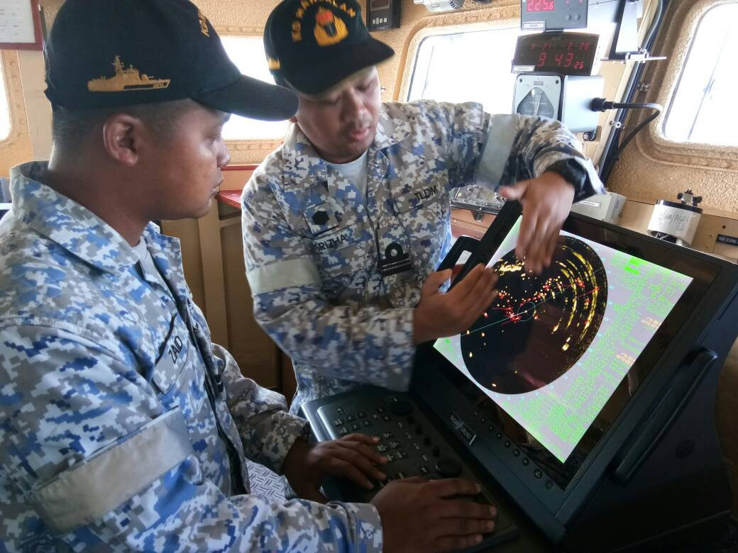 图为马来西亚海军人员正在使用海事雷达对事发海域进行分析,以便于展开搜救工作。