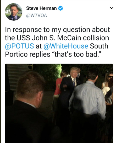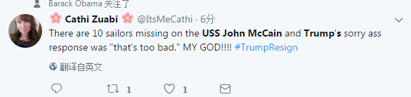这就是特朗普在听到麦凯恩号的撞船事件后的反应…….这个人完全没有同情心啊。
