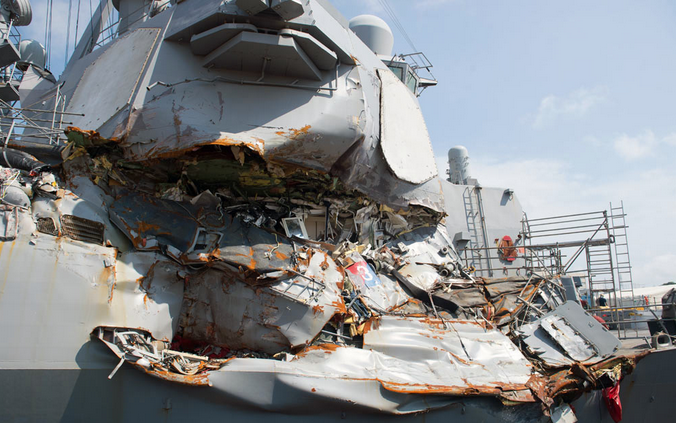 2017年6月17日凌晨,美海军“菲茨杰拉德”号驱逐舰在日本横须贺以南56海里附近海域与一艘在菲律宾注册的商船ACX Crystal相撞,严重受损,事故造成7名美海军士兵死亡,三人受伤。