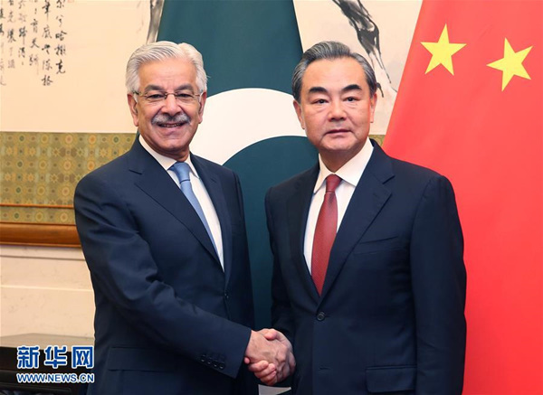 王毅与巴基斯坦外长阿西夫举行会谈,肯定巴基斯坦在反恐方面做出的努力