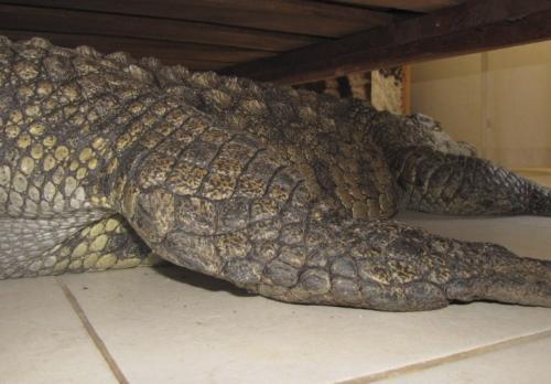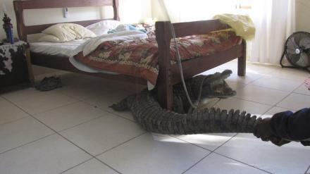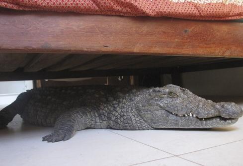 据女子回忆,她先一天晚上就感觉床底下有喘息声,当时没在意,今天晚上才发现了真相,也就是说这头鳄鱼已经在她床底下爬了一夜!而她就睡在上面!