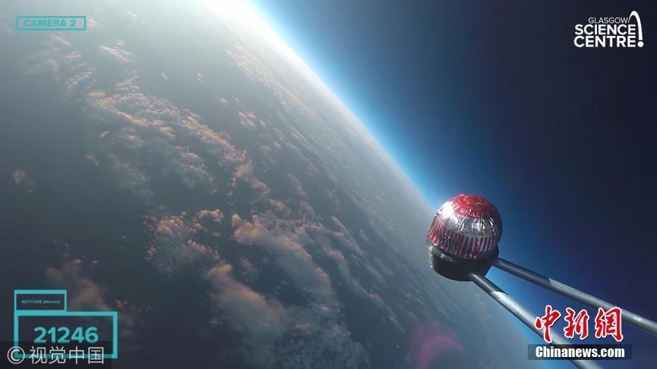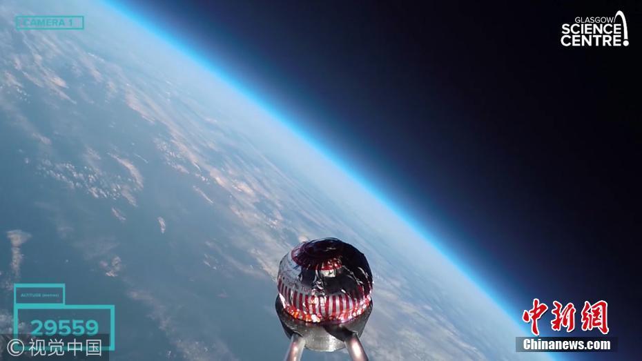 英国科研人员日前将苏格兰特产、一块汤诺克斯牌巧克力棉花糖茶点送上3万多米高空,并将其成功回收。