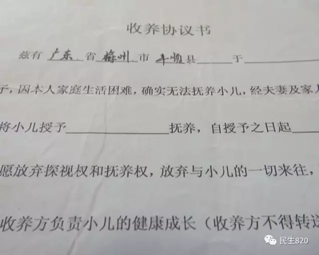 陈某平说,“收养”孩子那天,夫妻俩还见到了男婴的“母亲”,双方还写下了收养协议书。将所谓的九万二“营养费”交给对方,签下了收养协议书后,夫妻俩便抱着男婴准备回汕头,不料刚到路口就被公安机关给抓了。他们才知道收养的孩子原来是拐卖来的。
