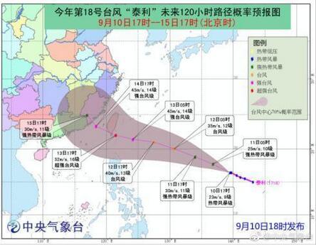 今年第18号台风“泰利”已生成,并向我国沿海靠近。今日,记者从国家防总了解到,经过会商,第18号台风“泰利”可能于9月14日前后登陆我国,或成为今年登陆我国的最强台风。