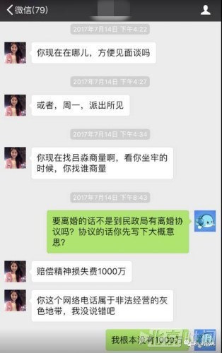一份双方的微信聊天记录截图显示,7月14日晚,翟某提出赔偿要求,并表示“你这个网络电话属于非法经营的灰色地带”。如果苏享茂拒绝,她就要“走正规渠道,看派出所怎么给你定罪吧”。