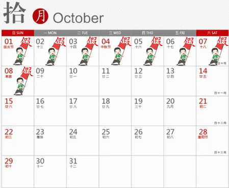 根据国务院办公厅通知精神,2017年中秋节、国庆节放假安排如下:10月1日(星期日)至10月8日(星期日)放假调休,共8天。9月30日(星期六)上班。