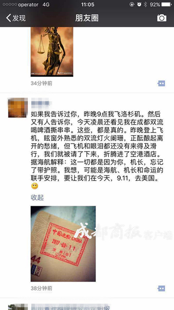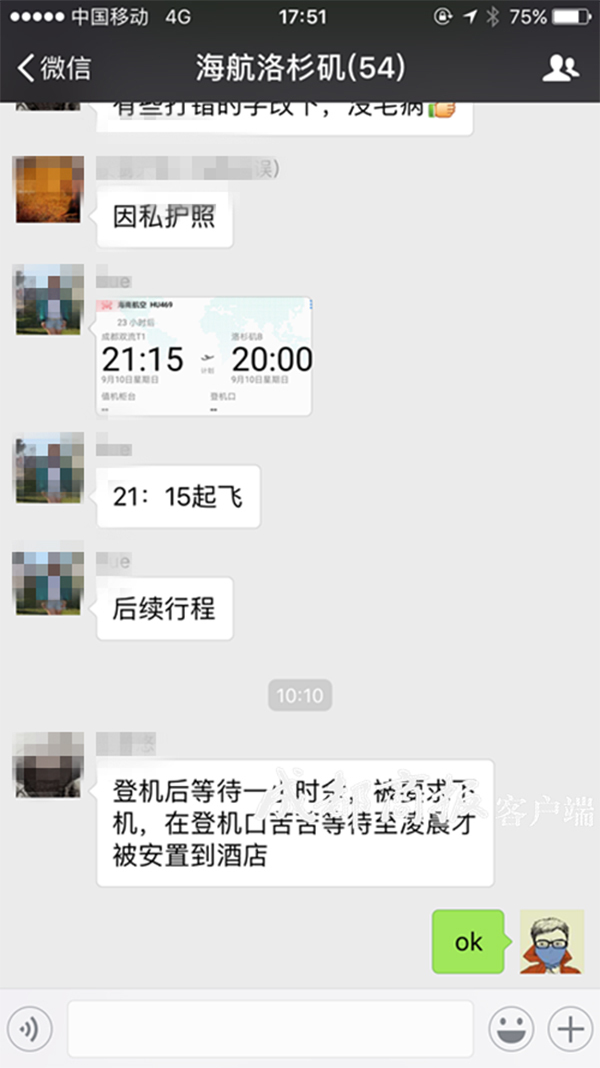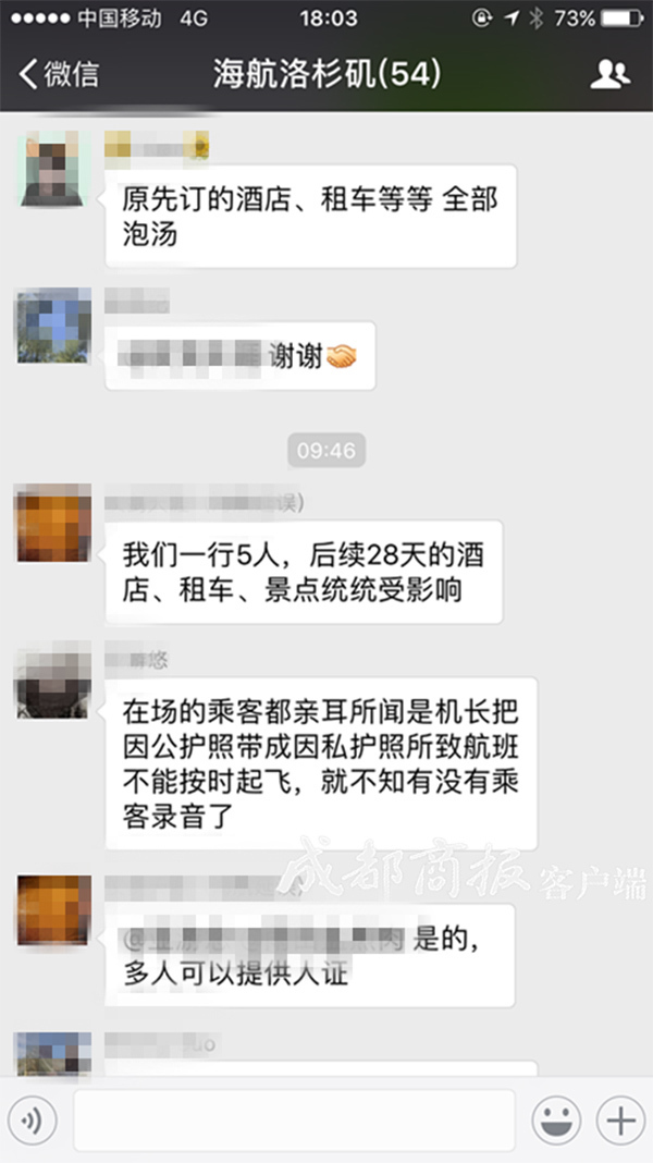 对于这一说法,多名乘客也向成都商报记者表示,在现场确实得到了如此的回答,在临时组建的一个“海航洛杉矶”微信群里,一名乘客表示,“在场的乘客亲耳听闻是机长把因公护照带成因私护照致航班不能按时起飞”,乘客谢先生则称“多人可以提供人证”。