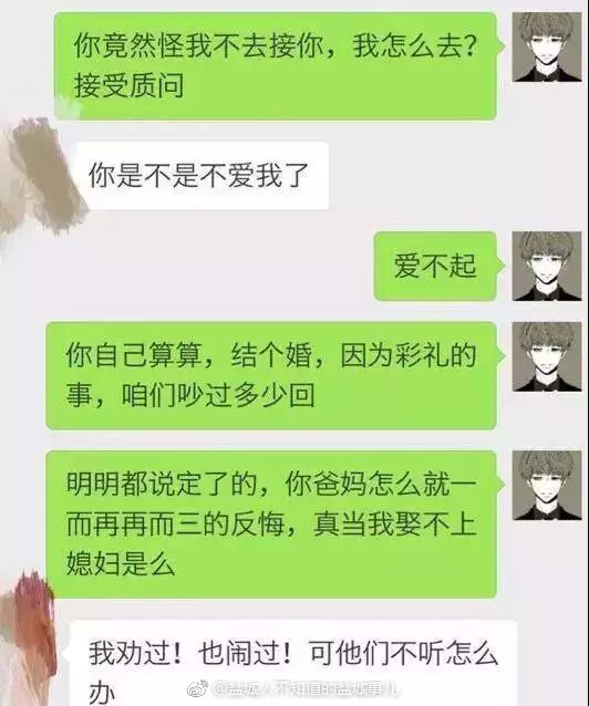 一早的又跟未婚妻大吵了一架,国庆结婚她家又要加彩礼钱,这都是第三次。