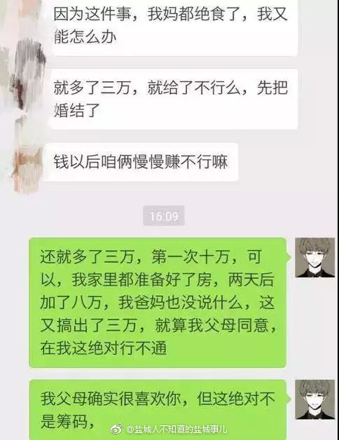 第三次,是在上次说过的二天后又要加3万,卖女儿的啊?都是普通家庭,不能因为我爸妈喜欢你就这样,这婚你爱结不结,拉倒。