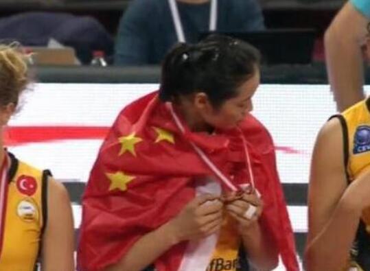 领奖时刻,朱婷身披五星红旗,这让球迷非常的感动,你是我们的骄傲!