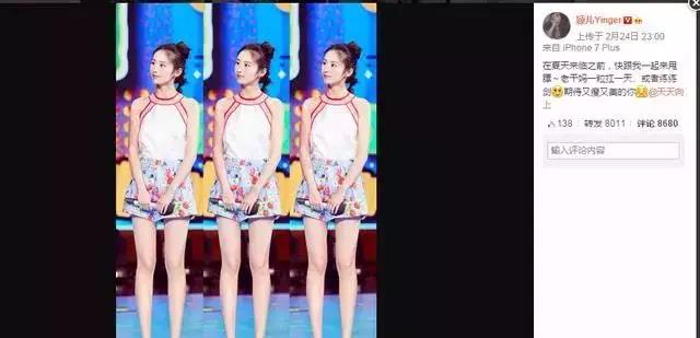 颖儿在看到网友的反应后决定要蜕变瘦身,沉寂了一段时间后,以女神的形象展示在了大家的面前,下巴变尖了,五官也更加的立体了,又细又长的美腿让网友直呼要看个够!