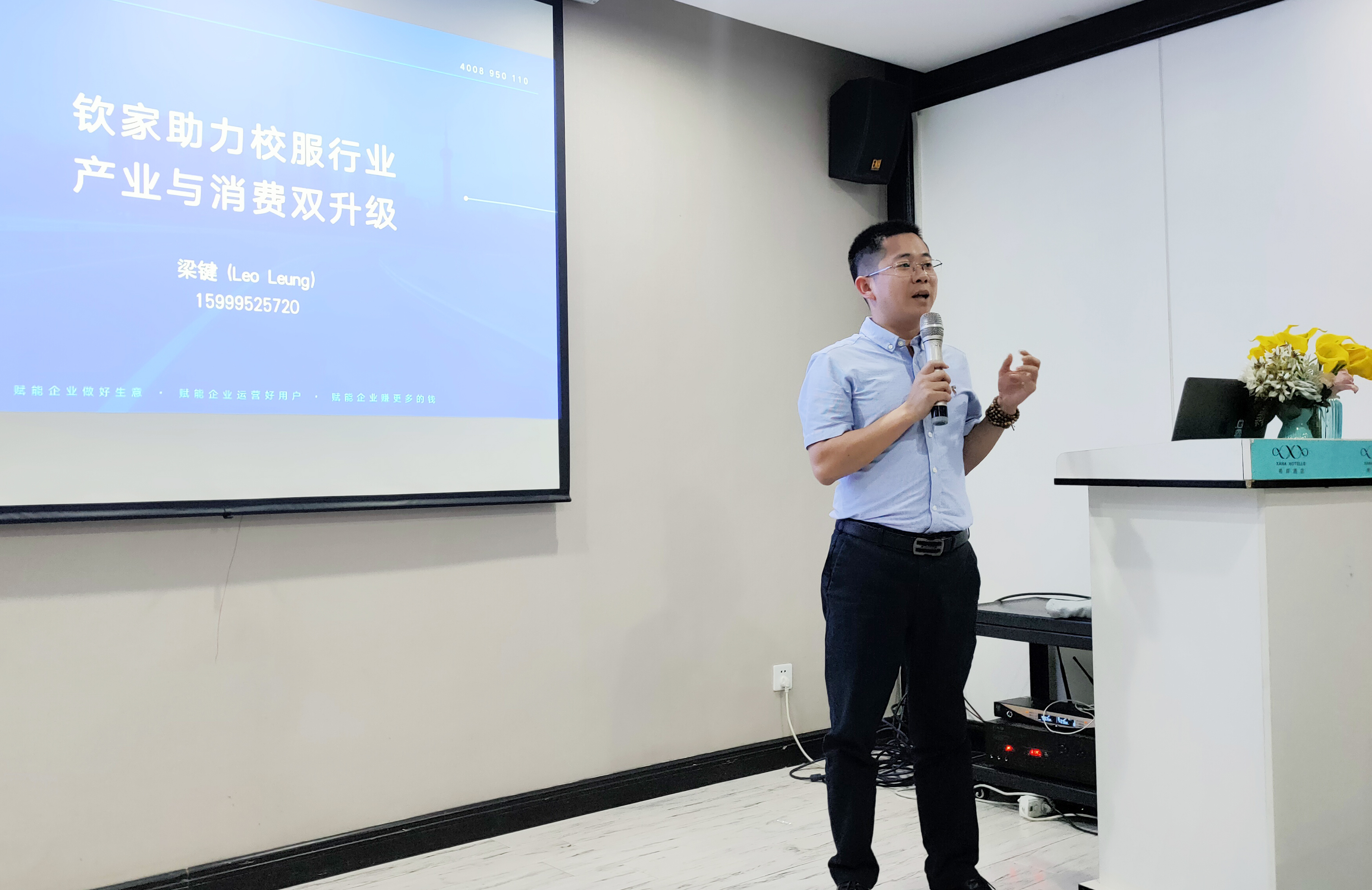 钦家市场总监宋总现场介绍平台标准化、规范化服务流程及体系,并具体展示平台线上培训、品牌运营、供应链支持等各项赋能服务。