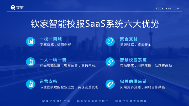 钦家平台商务部梁总简要介绍钦家平台发展历史、详细阐述平台SaaS系统六大优势服务,并现场演示指导如何使用校服智能征订系统、一校一商城系统等。