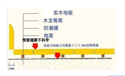 错误安装会直接导致实木地板瓦状变形,严重的情况下甚至会产生起拱以及板面被挤裂现象,后果严重。
