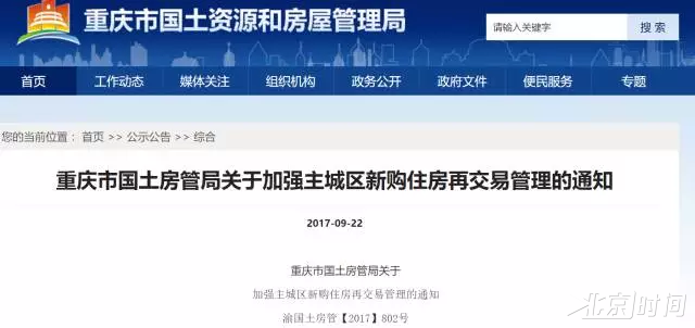 根据重庆市国土房管局发布的《关于加强主城区新购住房再交易管理的通知》要求,从9月23日起: