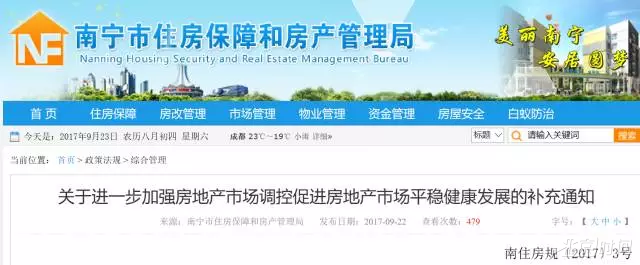 根据南宁市房管局发布的《关于进一步加强房地产市场调控促进房地产市场平稳健康发展的补充通知》,自9月22日起: