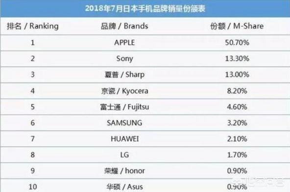 日本的主要手机品牌有索尼,夏普,京瓷,富士通,而我们熟知的三星华为这些品牌在日本的市场占有率其实是很低的。