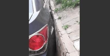 再走近一点,仔细看后,发现汽车与花台的石墩还是相隔有1厘米左右的距离的,然而看到这样一幕后,小编很像问一下,这车是怎么停进去的。小编也是开车多年了,停过的车位也有很多了,可是停成这样的,还真的是第一次见。