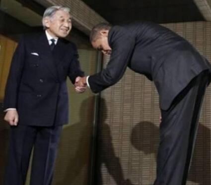 奥巴马就更为尊敬了,直接以接近90度鞠躬低头方式,来表达礼貌。日本天皇脸上总是笑的,很和蔼可亲。