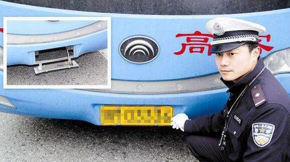 除了套牌,现在还有一种新型装置叫做“电子翻牌器”,这种装置是套牌的升级版本。一些人为了躲避交警和电子眼的惩罚,都会安装上这种随时翻牌的装置,即平时用合法牌照行驶,一到违章行为产生时就会用套牌或假牌蒙混过关。这种装置一旦被发现也是需要被扣12分的。(图为民警发现一辆长途客车安装有“电子翻牌”装置)。