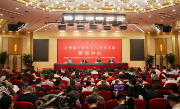 庆祝中华人民共和国成立70周年活动新闻中心在梅地亚中心二层新闻发布厅举办第一场新闻发布会。
