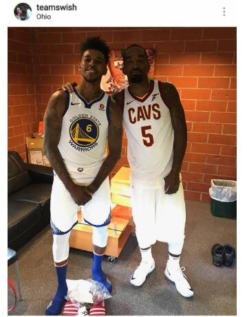 6月11日讯 骑士球员JR-史密斯在Ins晒出自己与勇士球员尼克杨的合影并祝贺后者夺冠。
