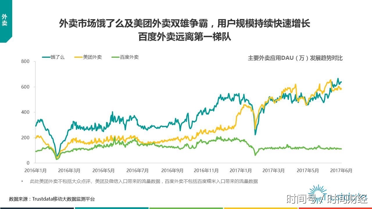 随后在时间财经的采访中,饿了么与百度外卖均对美团提出的市场份额数据表示疑义。