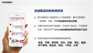 另外,我在好几个电商平台都挂了产品,社群里可以很智能的识别我的产品链接,全部可以集中在自己的社群里,与粉丝互动过程中就可以直接推荐产品。