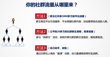 2、 群主能邀请自己的朋友圈、微信、QQ的朋友,然后从朋友开始自动产生裂变拉新,躺着就能吸流,流量都以群友的形式,变成你社群的永久流量;