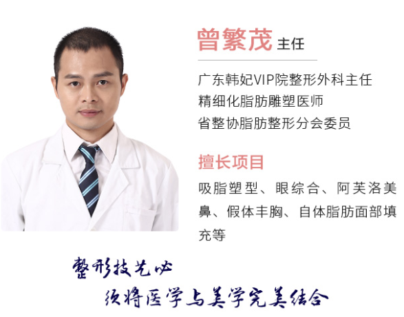 曾繁茂:毕业于南方医科大学临床医学专业,曾赴日韩知名整形机构进修深造,常与国内外行业领军人物进行学术交流及前沿课题讨论。在脂肪移植领域,曾繁茂主任有着丰富的经验,把美体塑形当成人体艺术雕刻,关注求美者感受,手法精细、精致;深谙韩式精雕美学,擅长打造精致立体、弧度优美的面部五官轮廓。从业十余年,为10000+求美者潜心安全塑美,赢得了业界口碑。