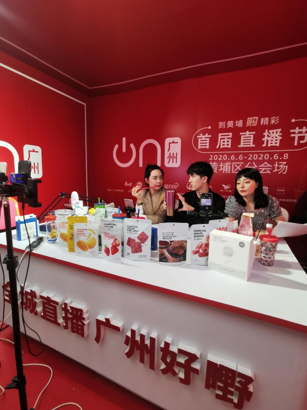首届直播节-荔湾区分会场,区领导在直播间为名创优品猪肉脯“打call”
