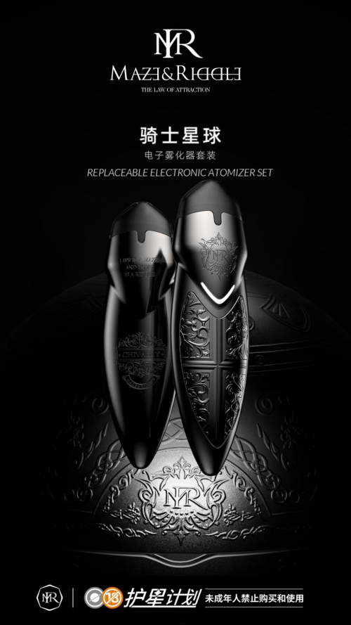 此次推出的骑士星球新品,产品设计灵感来源于中世纪欧洲军队圆桌骑士文化“骑士精神”,以守护世界的秩序、公正、平等为荣誉,用骑士的代表武器——“盾牌”和骑士精神为产品设计灵感。设计完美融合于产品细节(V形潮汐灯+V形鸢尾盾+V形轮廓),并赋予“胜利之盾”的概念:Vanguard-前卫、先锋,Victory-胜利、成功,Valuable-尊贵的、有价值的。MR迷睿第三代创新科技锌合金电镀工艺,将复古材质配色应用到MR迷睿新品骑士精神的产品设计上,烟杆装饰片运用文艺复兴时期代表艺术“哥特式图腾“,结合欧洲中世纪鸢尾盾造型及欧洲王室之花鸢尾花为盾牌的品牌徽章,表达了对于骑士精神的强烈歌颂。外包装上,则启用创新星球浮雕设计,外观完美贴合MR迷睿星系概念精湛技艺、尽显匠心,哥特式图腾环绕,充分体现建筑的结构与线条之美。