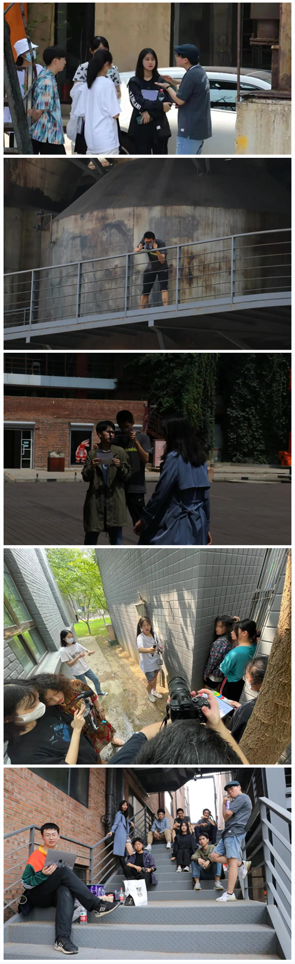 前置课后,为学生预留出3天的创作准备时间,期间学生按小组独立完成构思、剧本创作、勘景、对标参考影片、服化道等环节的前期工作。