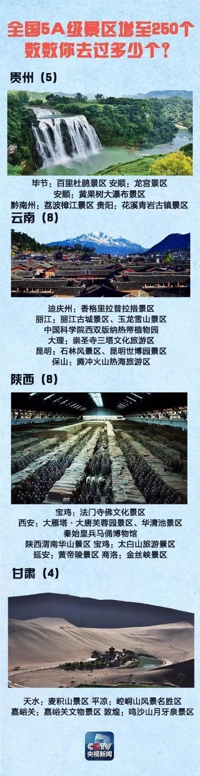 截至目前,全国5A级旅游景区已达250处,完整名单如下。快来数数你去过多少!
