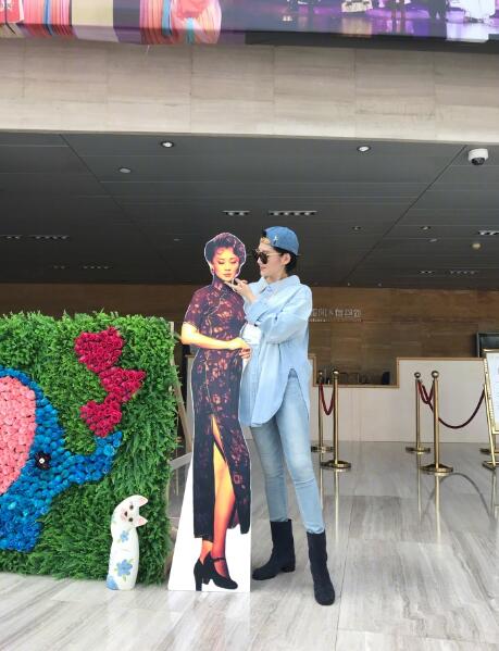 近日,许晴晒出一组个人照,她现身话剧《如梦之梦》自己的应援板前,搞怪“调戏”自己的人形立牌,许晴身穿牛仔衬衫搭配牛仔裤、反戴鸭舌帽,身材窈窕,看起来十分年轻,令网友感慨“简直是少女嘛!”