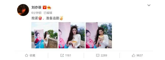 刘亦菲晒出最新照片,发文称:“准备追剧”。照片中,她身穿白裙,长发飘飘,和自己主演的新剧《梦华录》海报合影,捧着爆米花比耶很是可爱。据悉,今天是刘亦菲新剧《梦华录》开播的日子。