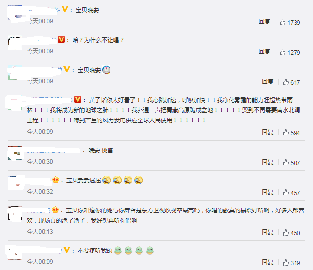 黄子韬本人的微博留言也是被海浪式的心疼给淹没了,可见涛涛人气真真不是一般的高,果然是收视最高保障。来源于长江云;